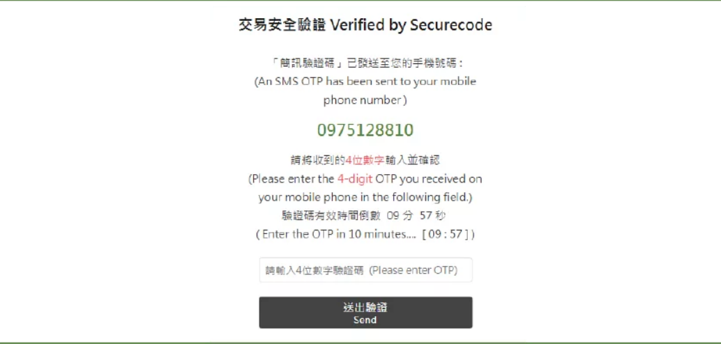 此時確認您剛剛輸入號碼的手機有沒有收到驗證簡訊, 把收到的四碼驗證簡訊輸入上去,並且按下「送出驗證」