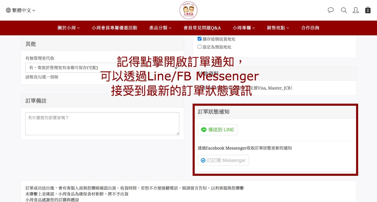 有無管理室代收、方便收貨時間,若有口味需求或其他要求可以填在備註