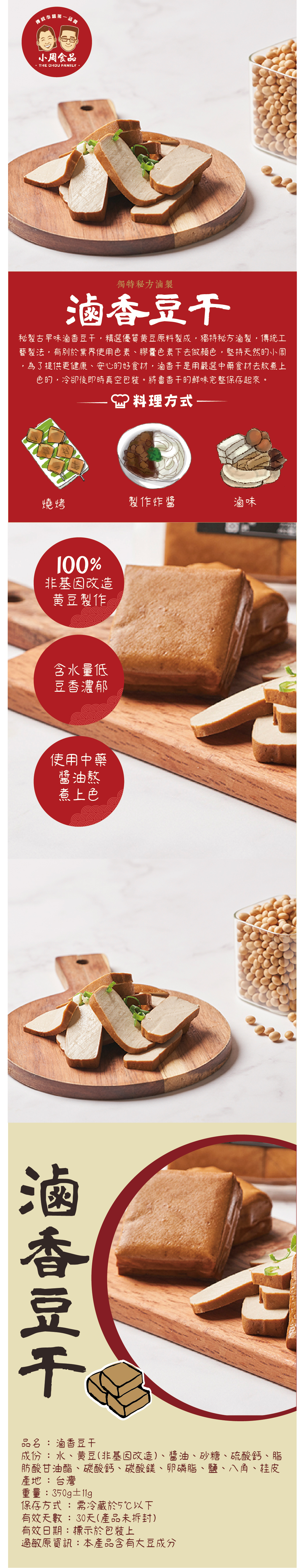 由本家「白玉豆干」經中藥去敖煮而成!!!外表黑金發光的小滷干,大口咬下,會給您滿滿中藥材與黑糖的香氣,與豆香風味在你的口中交織,每咬下一口都是撼動味蕾的回味無窮。